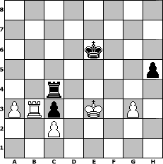 Partie-Notation im PGN-Format [Event "Ein Quicky zwischendurch"] [Site "www.mySchach.de"] [Date "2003.10.30"] [Round "1"] [White "larlinde"] [Black "Wolfgang"] [ECO "C01"] [WhitemyELO "1706"] [BlackmyELO "1714"] [Result "1-0"] [TimeControl "10/864000"] [WhiteDays "44"] [BlackDays "00"] [MySchachNr "1243"] 1. e4 e6 2. d4 c5 3. Nf3 cxd4 4. Nxd4 Nf6 5. Nc3 Bb4 6. e5 Nd5 7. Bd2 Nxc3 8. bxc3 Ba5 9. Qg4 O-O 10. Bd3 d5 11. O-O g6 12. Rfe1 Nd7 13. Rad1 Qe7 14. c4 Bxd2 15. Rxd2 Qb4 16. Qf4 dxc4 17. Nf3 b5 18. Be4 Rb8 19. Bc6 Qe7 20. Red1 Nb6 21. Qh6 f6 22. Bxb5 c3 23. exf6 Qxf6 24. Re2 Nd5 25. Bc4 Rb7 26. Ng5 Qf4 27. Bb3 Rf5 28. h4 Re5 29. Rxe5 Qxe5 30. h5 Qg7 31. Qxg7+ Kxg7 32. hxg6 Kxg6 33. Ne4 Rc7 34. Bxd5 exd5 35. Rxd5 Bf5 36. Rd6+ Kg7 37. f3 Bxe4 38. fxe4 Rc4 39. Ra6 Rxe4 40. Rxa7+ Kf6 41. Ra3 Rc4 42. Kf2 Ke5 43. g3 Ke4 44. Ke2 h5 45. Rb3 Kf5 46. a3 Ke6 47. Ke3 1-0 Stellungs-Notation im FEN-Format 8/8/4k3/7p/2r5/PRp1K1P1/2P5/8 - - - 2 47 Geschlagene Figuren Weiss: Geschlagene Figuren Schwarz: Klicken Sie auf eine geschlagene Figur um den gewünschten Zug darzustellen!