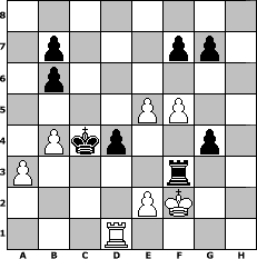 Partie-Notation im PGN-Format [Event "Open II"] [Site "www.mySchach.de"] [Date "2016.03.11"] [Round "1"] [White "Joschi"] [Black "espero"] [ECO "C17"] [WhitemyELO "1512"] [BlackmyELO "1821"] [Result "0-1"] [TimeControl "10/1728000"] [WhiteDays "80"] [BlackDays "73"] [MySchachNr "102869"] 1. e4 e6 2. d4 d5 3. Nc3 Bb4 4. e5 c5 5. a3 Ba5 6. Bb5+ Bd7 7. Bxd7+ Nxd7 8. Qd3 cxd4 9. Qxd4 Ne7 10. Nf3 O-O 11. Bf4 Qc7 12. b4 Bb6 13. Qd2 Rac8 14. Na4 Qxc2 15. Qxc2 Rxc2 16. Nxb6 Nxb6 17. O-O Rfc8 18. Nd4 R2c4 19. Be3 Nf5 20. Nxf5 exf5 21. Bxb6 axb6 22. Rfd1 d4 23. f4 Kf8 24. Rd3 Ke7 25. Rad1 Rd8 26. Kf2 Ke6 27. Kf3 Kd5 28. g3 h5 29. h3 Rdc8 30. Kg2 Rc2+ 31. Kf3 R8c3 32. g4 hxg4+ 33. hxg4 Kc4 34. Rxc3+ Rxc3+ 35. Kf2 fxg4 36. f5 Rf3+ 0-1 Stellungs-Notation im FEN-Format 8/1p3pp1/1p6/4PP2/1Pkp2p1/P4r2/4PK2/3R4 - - - 1 37 Geschlagene Figuren Weiss: Geschlagene Figuren Schwarz: Klicken Sie auf eine geschlagene Figur um den gewünschten Zug darzustellen!