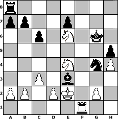 Partie eroeffnet am 18.04.2006, 00:05 Uhr und beendet am 15.06.2006, 17:53 Uhr Spieler weiss: Caligula Spieler schwarz: kalle Caligula hat die Partie gewonnen! | |