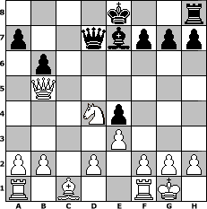 Partie-Notation im PGN-Format [Event "D.A. - Schnell 1"] [Site "www.mySchach.de"] [Date "2008.06.09"] [Round "1"] [White "brucybabe"] [Black "Caligula"] [ECO "D02"] [WhitemyELO "1629"] [BlackmyELO "1484"] [Result "1-0"] [TimeControl "10/864000"] [WhiteDays "10"] [BlackDays "10"] [MySchachNr "45483"] 1. d4 d5 2. Nf3 c5 3. c4 e6 4. e3 cxd4 5. Nxd4 e5 6. Nf3 e4 7. Nd4 dxc4 8. Bxc4 Nf6 9. Qb3 Qe7 10. Nc3 b6 11. O-O Bb7 12. Nd5 Nxd5 13. Bxd5 Bxd5 14. Qxd5 Qd7 15. Qxa8 Be7 16. Qxb8+ Bd8 17. Qe5+ Be7 18. Qb5 1-0 Stellungs-Notation im FEN-Format 4k2r/p2qbppp/1p6/1Q6/3Np3/4P3/PP1P1PPP/R1B2RK1 - k - 4 18 Geschlagene Figuren Weiss: Geschlagene Figuren Schwarz: Klicken Sie auf eine geschlagene Figur um den gewünschten Zug darzustellen!