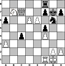 Partie eroeffnet am 06.02.2011, 00:04 Uhr und beendet am 04.03.2011, 08:46 Uhr Spieler weiss: Gauss1233 Spieler schwarz: reisender Gauss1233 hat die Partie gewonnen! | |