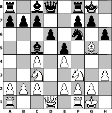 Partie-Notation im PGN-Format [Event "?"] [Site "www.mySchach.de"] [Date "2025.11.01"] [Round "?"] [White "skuehnel"] [Black "Ziegert"] [ECO "C25"] [WhitemyELO "1365"] [BlackmyELO "1990"] [Result "*"] [TimeControl "10/2592000"] [WhiteDays "23"] [BlackDays "05"] [MySchachNr "133884"] 1. e4 e5 2. Nc3 Nc6 3. Nf3 Bc5 4. Bc4 Nf6 5. h3 d6 6. O-O O-O 7. d3 Na5 8. Bg5 Nxc4 9. dxc4 h6 * Stellungs-Notation im FEN-Format r1bq1rk1/ppp2pp1/3p1n1p/2b1p1B1/2P1P3/2N2N1P/PPP1PPP1/R2Q1RK1 w - - 0 10 Geschlagene Figuren Weiss: Geschlagene Figuren Schwarz: Klicken Sie auf eine geschlagene Figur um den gewünschten Zug darzustellen!