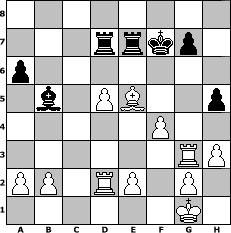 Partie-Notation im PGN-Format [Event "Mal verliert man, mal gewinnen die anderen"] [Site "www.mySchach.de"] [Date "2010.04.17"] [Round "1"] [White "Lemmi11"] [Black "Juliette2103"] [ECO "C65"] [WhitemyELO "1734"] [BlackmyELO "1556"] [Result "1-0"] [TimeControl "10/864000"] [WhiteDays "22"] [BlackDays "00"] [MySchachNr "64901"] 1. e4 e5 2. Nf3 Nc6 3. Bb5 Nf6 4. Nc3 d6 5. O-O a6 6. Bxc6+ bxc6 7. d4 exd4 8. Qxd4 Be7 9. e5 dxe5 10. Qxd8+ Bxd8 11. Nxe5 Bb7 12. Re1 O-O 13. Bf4 Kh8 14. Rad1 Nd5 15. Nxd5 cxd5 16. Nxf7+ Kg8 17. Nxd8 Rfxd8 18. Bxc7 Rd7 19. Be5 Rc8 20. Rd2 Re8 21. f4 Re6 22. h3 h5 23. Re3 Kf7 24. c4 Bc6 25. Red3 Ree7 26. cxd5 Bb5 27. Rg3 1-0 Stellungs-Notation im FEN-Format 8/3rrkp1/p7/1b1PB2p/5P2/6RP/PP1RP1P1/6K1 - - - 2 27 Geschlagene Figuren Weiss: Geschlagene Figuren Schwarz: Klicken Sie auf eine geschlagene Figur um den gewünschten Zug darzustellen!