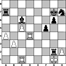 Partie-Notation im PGN-Format [Event "Mannschaftsturnier der letzen Mohikan3er"] [Site "www.mySchach.de"] [Date "2018.06.01"] [Round "1"] [White "Rotstift10"] [Black "martinus"] [ECO "B32"] [WhitemyELO "1623"] [BlackmyELO "1711"] [Result "0-1"] [TimeControl "10/2592000"] [WhiteDays "147"] [BlackDays "148"] [MySchachNr "112276"] 1. e4 c5 2. Nf3 Nc6 3. d4 cxd4 4. Nxd4 e5 5. Nb3 Nf6 6. Bd3 d5 7. exd5 Qxd5 8. O-O Be7 9. c4 Qd8 10. Be3 O-O 11. Qc2 Nb4 12. Bxh7+ Nxh7 13. Qe2 Qd3 14. Nc3 Qxe2 15. Nxe2 Nc2 16. Rac1 Nxe3 17. fxe3 Bg4 18. Ng3 Be6 19. Nf5 Bg5 20. Rc3 g6 21. Ng3 Rad8 22. Nc5 Bc8 23. Nge4 Be7 24. Rb3 f5 25. Nxb7 Rd7 26. Nec5 Rc7 27. Rb5 a6 28. Nxa6 Rxb7 29. Rxe5 Bf6 30. Rb5 Ra7 31. Nb4 Re8 32. b3 Bd7 33. Rd5 Rxe3 34. c5 Bb5 35. Rc1 Bc3 36. Nc2 Re2 37. Rd8+ Kg7 38. Nd4 Bxd4+ 39. Rxd4 Bc6 40. a4 Rxg2+ 0-1 Stellungs-Notation im FEN-Format 8/r5kn/2b3p1/2P2p2/P2R4/1P6/6rP/2R3K1 - - - 0 41 Geschlagene Figuren Weiss: Geschlagene Figuren Schwarz: Klicken Sie auf eine geschlagene Figur um den gewünschten Zug darzustellen!