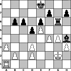 Partie-Notation im PGN-Format [Event "?"] [Site "www.mySchach.de"] [Date "2023.04.14"] [Round "?"] [White "Charli"] [Black "alibengali"] [ECO "D00"] [WhitemyELO "1626"] [BlackmyELO "1648"] [Result "0-1"] [TimeControl "10/2592000"] [WhiteDays "89"] [BlackDays "89"] [MySchachNr "129811"] 1. d4 d5 2. Bf4 c5 3. e3 cxd4 4. exd4 Nc6 5. Nc3 Bf5 6. Nf3 e6 7. Bd3 Bg6 8. O-O Nf6 9. Bg5 Be7 10. Bh6 gxh6 11. Qc1 Bxd3 12. cxd3 Ng4 13. h3 Nf6 14. Qxh6 Rg8 15. Ne2 Rg6 16. Qe3 Nh5 17. Ne5 Nxe5 18. dxe5 Bg5 19. Qd4 Qb6 20. Qxb6 axb6 21. f4 Bh4 22. g4 Ng3 23. Nxg3 Bxg3 24. Kg2 Bh4 25. a3 Rc8 26. Rfc1 Rc6 27. Rxc6 bxc6 0-1 Stellungs-Notation im FEN-Format 4k3/5p1p/1pp1p1r1/3pP3/5PPb/P2P3P/1P1P2K1/R7 - - - 0 28 Geschlagene Figuren Weiss: Geschlagene Figuren Schwarz: Klicken Sie auf eine geschlagene Figur um den gewünschten Zug darzustellen!