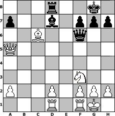 Partie-Notation im PGN-Format [Event "Ab in den Herbst"] [Site "www.mySchach.de"] [Date "2014.09.23"] [Round "1"] [White "alibengali"] [Black "muellerh"] [ECO "D24"] [WhitemyELO "1600"] [BlackmyELO "1498"] [Result "1-0"] [TimeControl "10/864000"] [WhiteDays "10"] [BlackDays "10"] [MySchachNr "96020"] 1. d4 d5 2. c4 dxc4 3. Nf3 Nf6 4. Nc3 e6 5. e4 Bb4 6. Bxc4 Nxe4 7. O-O Nxc3 8. bxc3 Bxc3 9. Rb1 Nc6 10. d5 exd5 11. Bxd5 O-O 12. Qb3 Ba5 13. Ba3 Bf5 14. Rbd1 Qf6 15. Bxf8 Kxf8 16. Qxb7 Rd8 17. Qxc6 Bd7 18. Qc5+ Kg8 19. Qxa5 c6 20. Bxc6 1-0 Stellungs-Notation im FEN-Format 3r2k1/p2b1ppp/2B2q2/Q7/8/5N2/P2P1PPP/3R1RK1 - - - 0 20 Geschlagene Figuren Weiss: ![]() ![]() ![]() ![]() ![]() ![]() ![]() ![]() ![]() ![]() ![]() ![]() ![]() ![]() ![]() Geschlagene Figuren Schwarz: ![]() ![]() ![]() ![]() ![]() ![]() ![]() ![]() ![]() ![]() ![]() ![]() ![]() ![]() ![]() Klicken Sie auf eine geschlagene Figur um den gewünschten Zug darzustellen!