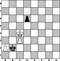 | Partie-Notation im PGN-Format [Event "chess960"] [Site "www.mySchach.de"] [Date "2009.09.20"] [Round "1"] [White "Steffi"] [Black "sterpfi"] [Variant "Fischerrandom"] [SetUp "1"] [FEN "nrbqnbkr/pppppppp/8/8/8/8/PPPPPPPP/NRBQNBKR w KQkq - 0 1"] [WhitemyELO "1535"] [BlackmyELO "1500"] [Result "1/2-1/2"] [TimeControl "10/2592000"] [WhiteDays "116"] [BlackDays "045"] [MySchachNr "59166"] 1. d4 d5 2. Nf3 Nf6 3. Nb3 Bf5 4. Bg5 e6 5. e3 h6 6. Bh4 g5 7. Bg3 Ne4 8. Bd3 h5 9. h3 g4 10. Nh4 gxh3 11. gxh3 Nxg3 12. fxg3 Bxd3 13. Qxd3 Qg5 14. Kg2 Bd6 15. Rhg1 O-O-O 16. Kf2 Bxg3+ 17. Rxg3 Qxh4 18. Rbg1 Rhg8 19. Qd1 Rxg3 20. Rxg3 Rg8 21. Qf3 Nb6 22. Nd2 Nc4 23. Nxc4 dxc4 24. Kg2 Rxg3+ 25. Qxg3 Qxg3+ 26. Kxg3 Kd7 27. Kh4 Ke7 28. Kxh5 Kf6 29. Kg4 Kg6 30. e4 f6 31. c3 a6 32. d5 exd5 33. exd5 b5 34. h4 a5 35. h5+ Kh6 36. Kf5 Kxh5 37. Kxf6 Kg4 38. Ke5 Kf3 39. Kd4 a4 40. Kc5 Ke4 41. d6 cxd6+ 42. Kxb5 Kd3 43. Kxa4 Kc2 44. Kb4 Kxb2 45. Kxc4 1/2-1/2 Stellungs-Notation im FEN-Format 8/8/3p4/8/2K5/2P5/Pk6/8 - - - 0 45 Geschlagene Figuren Weiss:                              Geschlagene Figuren Schwarz:                               Klicken Sie auf eine geschlagene Figur um den gewünschten Zug darzustellen!