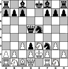 Partie-Notation im PGN-Format [Event "?"] [Site "www.mySchach.de"] [Date "2025.10.22"] [Round "?"] [White "Achimkogge"] [Black "pillepalle"] [ECO "A05"] [WhitemyELO "1226"] [BlackmyELO "2095"] [Result "0-1"] [TimeControl "10/1728000"] [WhiteDays "40"] [BlackDays "27"] [MySchachNr "133776"] 1. Nf3 Nf6 2. Ne5 d6 3. Nc4 e5 4. e4 Nxe4 5. g3 Nc6 6. c3 d5 7. Ne3 d4 8. Nc4 Ng5 9. Bd3 Qd5 10. Rf1 Nf3+ 11. Ke2 e4 12. Ne3 exd3+ 13. Kxd3 Nce5+ 14. Ke2 d3# 0-1 Stellungs-Notation im FEN-Format r1b1kb1r/ppp2ppp/8/3qn3/8/2PpNnP1/PP1PKP1P/RNBQ1RN1 - kq - 0 15 Geschlagene Figuren Weiss: Geschlagene Figuren Schwarz: Klicken Sie auf eine geschlagene Figur um den gewünschten Zug darzustellen!