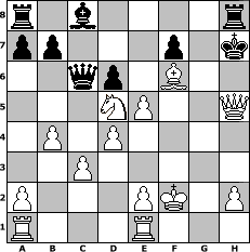 Partie-Notation im PGN-Format [Event "Wer schnell zieht,ist schneller fertig!"] [Site "www.mySchach.de"] [Date "2015.10.08"] [Round "1"] [White "miu"] [Black "Achimkogge"] [ECO "C61"] [WhitemyELO "1588"] [BlackmyELO "1490"] [Result "1-0"] [TimeControl "10/1728000"] [WhiteDays "20"] [BlackDays "20"] [MySchachNr "100726"] 1. e4 e5 2. Nf3 Nc6 3. Bb5 Nd4 4. Nxd4 exd4 5. O-O c6 6. Bc4 Nf6 7. e5 Nd5 8. Bxd5 cxd5 9. Re1 Be7 10. Qg4 g6 11. Qxd4 O-O 12. Nc3 Qa5 13. Nxd5 Bc5 14. Nf6+ Kg7 15. Qh4 h5 16. c3 Rh8 17. b4 Bxf2+ 18. Kxf2 Qb6+ 19. d4 Qd8 20. Bg5 Qb6 21. g4 d6 22. gxh5 gxh5 23. Nd5 Qc6 24. Bf6+ Kh7 25. Qxh5+ 1-0 Stellungs-Notation im FEN-Format r1b4r/pp3p1k/2qp1B2/3NP2Q/1P1P4/2P5/P3PK1P/R3R3 - - - 0 25 Geschlagene Figuren Weiss: Geschlagene Figuren Schwarz: Klicken Sie auf eine geschlagene Figur um den gewünschten Zug darzustellen!