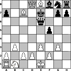 Partie-Notation im PGN-Format [Event "Obsidian"] [Site "www.mySchach.de"] [Date "2022.09.04"] [Round "1"] [White "beowulf"] [Black "Master1"] [ECO "A02"] [WhitemyELO "1484"] [BlackmyELO "1401"] [Result "1-0"] [TimeControl "10/864000"] [WhiteDays "10"] [BlackDays "08"] [MySchachNr "127022"] 1. f4 f5 2. Nf3 Nc6 3. b3 d6 4. Bb2 e5 5. fxe5 dxe5 6. Nxe5 Nxe5 7. Bxe5 Qh4+ 8. g3 Qe4 9. Bxc7 Qxh1 10. e3 Qxh2 11. Qf3 Qh6 12. Bb5+ Bd7 13. Qxb7 Rc8 14. Qxc8+ Ke7 15. Qxd7+ Kf6 16. Qd4+ Kf7 17. Qd5+ Qe6 18. Be8+ Ke7 19. Qd8# 1-0 Stellungs-Notation im FEN-Format 3QBbnr/p1B1k1pp/4q3/5p2/8/1P2P1P1/P1PP1P2/RN2K3 - Q - 8 19 Geschlagene Figuren Weiss: Geschlagene Figuren Schwarz: Klicken Sie auf eine geschlagene Figur um den gewünschten Zug darzustellen!