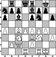 Partie-Notation im PGN-Format [Event "Der Beste hinter den 1900ern(3/10) oder 10 hoch 2"] [Site "www.mySchach.de"] [Date "2010.01.12"] [Round "1"] [White "Gambitianer"] [Black "lasker"] [ECO "C01"] [WhitemyELO "1803"] [BlackmyELO "1351"] [Result "0-1"] [TimeControl "10/864000"] [WhiteDays "00"] [BlackDays "10"] [MySchachNr "62345"] 1. e4 e6 2. d4 d5 3. c4 dxc4 4. Bxc4 Nf6 5. Nc3 Be7 6. f4 O-O 7. Nf3 Nc6 8. O-O a6 9. a4 Bd7 10. h3 Rb8 11. Be3 Na7 12. g4 Bc6 13. Qc2 h6 14. Rad1 Re8 0-1 Stellungs-Notation im FEN-Format 1r1qr1k1/npp1bpp1/p1b1pn1p/8/P1BPPPP1/2N1BN1P/1PQ1P3/3R1RK1 - - - 2 15 Geschlagene Figuren Weiss: Geschlagene Figuren Schwarz: Klicken Sie auf eine geschlagene Figur um den gewünschten Zug darzustellen!