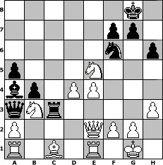 Partie-Notation im PGN-Format [Event "Im Winter 2020"] [Site "www.mySchach.de"] [Date "2020.01.29"] [Round "2"] [White "Joschi"] [Black "skuehnel"] [ECO "C41"] [WhitemyELO "1583"] [BlackmyELO "1306"] [Result "1-0"] [TimeControl "10/1728000"] [WhiteDays "60"] [BlackDays "30"] [MySchachNr "117133"] 1. e4 e5 2. Nf3 d6 3. Bc4 Nf6 4. d3 Nc6 5. O-O Be7 6. Re1 O-O 7. c3 h6 8. h3 Bd7 9. Be3 Na5 10. Nbd2 c5 11. b4 Nxc4 12. Nxc4 b5 13. Ncd2 a5 14. bxc5 Rc8 15. cxd6 Rxc3 16. dxe7 Qxe7 17. d4 Rd3 18. Qc2 Qa3 19. Nb3 Rc8 20. Qxd3 b4 21. Nxe5 Rc3 22. Qe2 Ba4 23. Bc1 1-0 Stellungs-Notation im FEN-Format 6k1/5pp1/5n1p/p3N3/bp1PP3/qNr4P/P3QPP1/R1B1R1K1 - - - 4 23 Geschlagene Figuren Weiss: Geschlagene Figuren Schwarz: Klicken Sie auf eine geschlagene Figur um den gewünschten Zug darzustellen!
