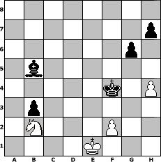 Partie-Notation im PGN-Format [Event "^^Lust, Laune und Spannung am Schach!!!^^"] [Site "www.mySchach.de"] [Date "2007.09.24"] [Round "1"] [White "Andylein1989"] [Black "Robur"] [ECO "B02"] [WhitemyELO "1440"] [BlackmyELO "1815"] [Result "0-1"] [TimeControl "10/864000"] [WhiteDays "45"] [BlackDays "05"] [MySchachNr "38438"] 1. e4 Nf6 2. Nc3 d5 3. exd5 Nxd5 4. Bc4 Nb6 5. Bb3 Nc6 6. d3 Nd4 7. Be3 c5 8. Qh5 e6 9. Nge2 Be7 10. O-O Nxb3 11. axb3 O-O 12. Bxc5 Bxc5 13. Qxc5 Bd7 14. Na4 Rc8 15. Qa5 Nxa4 16. Qxd8 Rfxd8 17. bxa4 Rxc2 18. Nd4 Rxb2 19. Rab1 Rxb1 20. Rxb1 b6 21. Rb4 Be8 22. Kf1 e5 23. Nf3 f6 24. Ke2 Rd5 25. Nh4 Ra5 26. Nf5 Rxa4 27. Rxa4 Bxa4 28. Ne7+ Kf7 29. Nc8 b5 30. Nxa7 b4 31. Kd2 Ke6 32. Nc8 Bc6 33. g3 e4 34. dxe4 Bxe4 35. Nb6 Kf5 36. Nc4 Kg4 37. h4 Kf3 38. Ke1 Bd3 39. Nb2 Bb5 40. Nd1 f5 41. Ne3 b3 42. Nd1 g6 43. Nb2 f4 44. gxf4 Kxf4 0-1 Stellungs-Notation im FEN-Format 8/7p/6p1/1b6/5k1P/1p6/1N3P2/4K3 - - - 0 45 Geschlagene Figuren Weiss: Geschlagene Figuren Schwarz: Klicken Sie auf eine geschlagene Figur um den gewünschten Zug darzustellen!