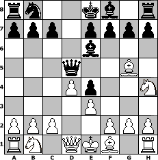 Partie-Notation im PGN-Format [Event "Mal was anderes !"] [Site "www.mySchach.de"] [Date "2010.03.30"] [Round "1"] [White "Jonas84"] [Black "Helmut48"] [ECO "A00"] [WhitemyELO "1404"] [BlackmyELO "1830"] [Result "0-1"] [TimeControl "10/2592000"] [WhiteDays "28"] [BlackDays "30"] [MySchachNr "64393"] 1. Nc3 d5 2. d4 Nf6 3. Nf3 Bf5 4. Bg5 Ne4 5. Nxe4 dxe4 6. Nh4 Be6 7. e3 Qd5 0-1 Stellungs-Notation im FEN-Format rn2kb1r/ppp1pppp/4b3/3q2B1/3Pp2N/4P3/PPP2PPP/RN1QKB1R - KQkq - 1 8 Geschlagene Figuren Weiss: Geschlagene Figuren Schwarz: Klicken Sie auf eine geschlagene Figur um den gewünschten Zug darzustellen!