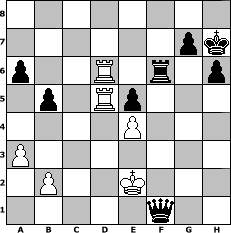 Partie-Notation im PGN-Format [Event "Schach dem Osterhasen VII"] [Site "www.mySchach.de"] [Date "2019.04.17"] [Round "1"] [White "Joschi"] [Black "UPS"] [ECO "B56"] [WhitemyELO "1551"] [BlackmyELO "1693"] [Result "0-1"] [TimeControl "10/2592000"] [WhiteDays "150"] [BlackDays "103"] [MySchachNr "114825"] 1. e4 c5 2. Nf3 d6 3. d4 cxd4 4. Nxd4 Nf6 5. Nc3 Bd7 6. Be2 e5 7. Ndb5 Bc6 8. Qd3 a6 9. Na3 Be7 10. O-O Nbd7 11. Nc4 Nc5 12. Qe3 O-O 13. f3 b5 14. Nd2 h6 15. a3 Nh5 16. Rd1 Nf4 17. Bd3 Bg5 18. Qf2 Ncxd3 19. cxd3 Nxd3 20. Qe2 Nf4 21. Qe1 Nd3 22. Qe2 Nf4 23. Qf1 f5 24. g3 Ng6 25. Qe2 f4 26. Nb3 fxg3 27. hxg3 Bxc1 28. Raxc1 Qg5 29. Kh2 Rf6 30. Nd5 Qh5+ 31. Kg2 Bxd5 32. Rxd5 Raf8 33. Nd2 Nf4+ 34. gxf4 Rg6+ 35. Kf2 Rxf4 36. Nf1 Qh1 37. Ke3 Rgf6 38. Rc8+ Kh7 39. Rc6 Rxf3+ 40. Kd2 Rf2 41. Rcxd6 Rxe2+ 42. Kxe2 Qxf1+ 0-1 Stellungs-Notation im FEN-Format 8/6pk/p2R1r1p/1p1Rp3/4P3/P7/1P2K3/5q2 - - - 0 43 Geschlagene Figuren Weiss: Geschlagene Figuren Schwarz: Klicken Sie auf eine geschlagene Figur um den gewünschten Zug darzustellen!