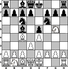 Partie-Notation im PGN-Format [Event "Turnier in den M"] [Site "www.mySchach.de"] [Date "2014.02.19"] [Round "1"] [White "augustus"] [Black "Ziegert"] [ECO "C50"] [WhitemyELO "1341"] [BlackmyELO "1485"] [Result "1-0"] [TimeControl "10/2592000"] [WhiteDays "30"] [BlackDays "00"] [MySchachNr "93075"] 1. e4 e5 2. Nf3 Nc6 3. Bc4 Bc5 4. d3 Nf6 5. Ng5 1-0 Stellungs-Notation im FEN-Format r1bqk2r/pppp1ppp/2n2n2/2b1p1N1/2B1P3/3P4/PPP1PPPP/RNBQK2R - KQkq - 2 5 Geschlagene Figuren Weiss: Geschlagene Figuren Schwarz: Klicken Sie auf eine geschlagene Figur um den gewünschten Zug darzustellen!