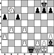 Partie eroeffnet am 15.06.2010, 00:03 Uhr und beendet am 15.08.2010, 16:28 Uhr Spieler weiss: Master1 Spieler schwarz: brucybabe brucybabe hat die Partie gewonnen! | |