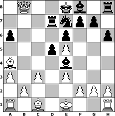 Partie-Notation im PGN-Format [Event "?"] [Site "www.mySchach.de"] [Date "2025.10.18"] [Round "?"] [White "Oste152V4"] [Black "Sachsenbauer@"] [ECO "D02"] [WhitemyELO "1755"] [BlackmyELO "1500"] [Result "1-0"] [TimeControl "10/3456000"] [WhiteDays "33"] [BlackDays "38"] [MySchachNr "133773"] 1. d4 d5 2. Nf3 h6 3. e3 Bg4 4. c3 e6 5. Nbd2 Qf6 6. Qa4+ c6 7. Qb3 Qe7 8. a3 b6 9. Bd3 b5 10. Ne5 Bf5 11. Ndf3 Nd7 12. Nxc6 Qd6 13. Bxb5 a6 14. Ba4 Ne7 15. Nce5 Rd8 16. Nxd7 Rxd7 17. Ne5 Qxe5 18. dxe5 Be4 19. Qb8+ 1-0 Stellungs-Notation im FEN-Format 1Q2kb1r/3rnpp1/p3p2p/3pP3/B3b3/P1P1P3/1P3PPP/R1B1K2R - KQk - 2 19 Geschlagene Figuren Weiss: Geschlagene Figuren Schwarz: Klicken Sie auf eine geschlagene Figur um den gewünschten Zug darzustellen!