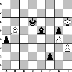 Partie-Notation im PGN-Format [Event "Mein Zweij"] [Site "www.mySchach.de"] [Date "2009.09.25"] [Round "1"] [White "bluescreenlover"] [Black "rgHD"] [ECO "A56"] [WhitemyELO "1340"] [BlackmyELO "1547"] [Result "0-1"] [TimeControl "10/864000"] [WhiteDays "08"] [BlackDays "09"] [MySchachNr "59314"] 1. d4 Nf6 2. c4 c5 3. e3 Nc6 4. Nf3 e6 5. Bd3 d5 6. Nc3 dxc4 7. Bxc4 cxd4 8. exd4 Bb4 9. O-O O-O 10. Bd2 Nxd4 11. Bg5 Nxf3+ 12. Qxf3 Be7 13. Rad1 Qc7 14. Qe2 Bd7 15. Bxf6 Bxf6 16. Nb5 Bxb5 17. Bxb5 Rad8 18. g3 Qb6 19. Rxd8 Rxd8 20. Ba4 Qxb2 21. Qxb2 Bxb2 22. Rd1 Rxd1+ 23. Bxd1 f5 24. f4 e5 25. fxe5 Bxe5 26. Kg2 Kf7 27. Bb3+ Ke7 28. h3 Kd6 29. Kf3 b5 30. g4 f4 31. Ke4 g5 32. a4 bxa4 33. Bxa4 a5 34. Kf5 h6 35. Kg6 f3 36. Kxh6 f2 37. Bb5 a4 0-1 Stellungs-Notation im FEN-Format 8/8/3k3K/1B2b1p1/p5P1/7P/5p2/8 - - - 0 38 Geschlagene Figuren Weiss: Geschlagene Figuren Schwarz: Klicken Sie auf eine geschlagene Figur um den gewünschten Zug darzustellen!