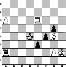 Partie-Notation im PGN-Format [Event "Siebenschl"] [Site "www.mySchach.de"] [Date "2009.07.07"] [Round "1"] [White "Robert"] [Black "RashimIbenRohal"] [Variant "Fischerrandom"] [SetUp "1"] [FEN "bqnbnrkr/pppppppp/8/8/8/8/PPPPPPPP/BQNBNRKR w KQkq - 0 1"] [WhitemyELO "1617"] [BlackmyELO "1522"] [Result "1-0"] [TimeControl "10/2592000"] [WhiteDays "123"] [BlackDays "150"] [MySchachNr "57226"] 1. b4 Nf6 2. Nf3 e6 3. c4 b6 4. e3 d5 5. d3 dxc4 6. dxc4 Be7 7. Qb2 Nd6 8. Ne5 Rd8 9. b5 h5 10. Nc6 Bxc6 11. bxc6 Rh6 12. Bc2 Nxc4 13. Qc3 Nd6 14. Ne2 Nde8 15. Nf4 g5 16. Nd3 Nd5 17. Qb3 Bf6 18. Bxf6 Nexf6 19. Rd1 Kg7 20. Qb2 Rd6 21. Ne5 Qd8 22. O-O Kf8 23. e4 Nf4 24. Rxd6 cxd6 25. Rd1 Qc7 26. Qa3 Ke7 27. Nc4 Ne8 28. e5 Nd5 29. exd6+ Nxd6 30. Nxd6 Qxd6 31. Qxa7+ Kf6 32. Qxb6 Qxh2+ 33. Kxh2 Nxb6 34. c7 Ke7 35. Rd8 Rf6 36. c8=Q Nxc8 37. Rxc8 Rxf2 38. a4 Rf1 39. Bd3 Ra1 40. Bb5 Kf6 41. Rc5 e5 42. Bd7 e4 43. Rf5+ Kg6 44. Re5 f5 45. Ra5 Rf1 46. Be8+ Kf6 47. Bxh5 f4 48. Bg4 e3 49. Rf5+ Kg6 50. Re5 Kf6 51. Re6+ Kf7 52. a5 Ra1 53. Re5 Kf6 54. Rb5 Ra2 55. Rb6+ Ke5 56. Re6+ Kd4 57. a6 1-0 Stellungs-Notation im FEN-Format 8/8/P3R3/6p1/3k1pB1/4p3/r5PK/8 - - - 0 57 Geschlagene Figuren Weiss: Geschlagene Figuren Schwarz: Klicken Sie auf eine geschlagene Figur um den gewünschten Zug darzustellen!