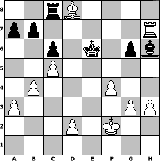 Partie-Notation im PGN-Format [Event "Abermals Aljechin"] [Site "www.mySchach.de"] [Date "2011.02.13"] [Round "2"] [White "Svetlana"] [Black "kari6katz"] [ECO "A52"] [WhitemyELO "1586"] [BlackmyELO "1796"] [Result "1-0"] [TimeControl "10/1728000"] [WhiteDays "79"] [BlackDays "80"] [MySchachNr "71993"] 1. d4 Nf6 2. c4 e5 3. dxe5 Ng4 4. e4 d6 5. exd6 Bxd6 6. Be2 Nf6 7. Nf3 Nc6 8. Nc3 O-O 9. Be3 Re8 10. c5 Bf8 11. Qxd8 Rxd8 12. h3 Nb4 13. Rc1 Be6 14. a3 Nc6 15. O-O Nd7 16. Nb5 Rac8 17. Nfd4 Nxd4 18. Nxd4 c6 19. b4 Nf6 20. Nxe6 fxe6 21. Bc4 Re8 22. Bd4 Rcd8 23. Rcd1 Nxe4 24. Rfe1 Ng5 25. f4 Nf7 26. Bxe6 g6 27. Kf2 Bh6 28. g3 Kf8 29. Bc4 Rxe1 30. Kxe1 Re8+ 31. Kf2 Re7 32. Bf6 Rc7 33. Bxf7 Kxf7 34. Bd8 Rc8 35. Rd7+ Ke6 36. Rxh7 1-0 Stellungs-Notation im FEN-Format 2rB4/pp5R/2p1k1pb/2P5/1P3P2/P5PP/3P1K2/8 - - - 0 36 Geschlagene Figuren Weiss: Geschlagene Figuren Schwarz: Klicken Sie auf eine geschlagene Figur um den gewünschten Zug darzustellen!