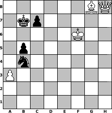 Partie-Notation im PGN-Format [Event "Andys MySchach-960-Abschiedsturnier 2017"] [Site "www.mySchach.de"] [Date "2017.02.18"] [Round "1"] [White "larlinde"] [Black "Peterlie77 (C)"] [Variant "Fischerrandom"] [SetUp "1"] [FEN "nnbrqkrb/pppppppp/8/8/8/8/PPPPPPPP/NNBRQKRB w KQkq - 0 1"] [WhitemyELO "2130"] [BlackmyELO "2148"] [Result "1-0"] [TimeControl "10/2592000"] [WhiteDays "30"] [BlackDays "30"] [MySchachNr "107028"] 1. O-O g5 2. d4 Nb6 3. f4 gxf4 4. Bxf4 d6 5. e4 Bg4 6. Rd3 Qc6 7. Bh6+ Bg7 8. Bd2 O-O-O 9. Rf2 h5 10. Nc3 Nc4 11. Bc1 Qa6 12. b4 b5 13. Nd5 Nc6 14. c3 h4 15. Nb3 Bh8 16. h3 Be6 17. Kh2 Nb6 18. g3 hxg3+ 19. Rxg3 Rxg3 20. Kxg3 Nc4 21. e5 Bxd5 22. Bxd5 e6 23. Bg2 N6xe5 24. Qe2 Nd7 25. Rxf7 d5 26. Kh2 Qd6+ 27. Kh1 Qc6 28. h4 Bf6 29. Qf2 Bh8 30. Bg5 Re8 31. Re7 Rxe7 32. Bxe7 Nd6 33. Qg3 Nb6 34. Nc5 Kb8 35. Na6+ Kb7 36. Nc5+ Kb8 37. Bh3 Nbc8 38. Bd8 a6 39. Kg2 Nb6 40. Bxe6 Qe8 41. Nxa6+ Kb7 42. Nc5+ Kb8 43. Qg8 Qxg8+ 44. Bxg8 Ne4 45. Nxe4 dxe4 46. h5 Bg7 47. Bg5 Na4 48. Bd2 e3 49. Bxe3 Nxc3 50. h6 Nd1 51. Bf4 Bxd4 52. Kf3 Nc3 53. h7 Bg7 54. Kg4 Ne2 55. Bg5 Nd4 56. Kh5 Nf3 57. Be7 Bh8 58. Kg6 Ne5+ 59. Kf5 Nc6 60. Bf6 Bxf6 61. Kxf6 Nxb4 62. h8=Q Kb7 63. a3 1-0 Stellungs-Notation im FEN-Format 6BQ/1kp5/5K2/1p6/1n6/P7/8/8 - - - 0 63 Geschlagene Figuren Weiss: Geschlagene Figuren Schwarz: Klicken Sie auf eine geschlagene Figur um den gewünschten Zug darzustellen!