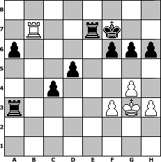 Partie-Notation im PGN-Format [Event "LASKER 2016/1916"] [Site "www.mySchach.de"] [Date "2016.10.26"] [Round "1"] [White "Seneca"] [Black "Naunhofer"] [ECO "D57"] [WhitemyELO "1513"] [BlackmyELO "1606"] [Result "0-1"] [TimeControl "10/2592000"] [WhiteDays "099"] [BlackDays "180"] [MySchachNr "105428"] 1. d4 d5 2. c4 e6 3. Nc3 Nf6 4. Bg5 Be7 5. e3 O-O 6. Nf3 h6 7. Bh4 Ne4 8. Bxe7 Qxe7 9. cxd5 Nxc3 10. bxc3 exd5 11. Be2 Be6 12. O-O Nd7 13. Nd2 c5 14. Qb3 Nb6 15. Bf3 c4 16. Qc2 Nc8 17. Rab1 Nd6 18. Rfe1 Qg5 19. Rb2 Rab8 20. g3 a6 21. Bg2 b5 22. Nf3 Qd8 23. Ne5 Qc7 24. Reb1 Bf5 25. e4 Nxe4 26. g4 Bh7 27. Qc1 f6 28. Nf3 Qa5 29. Ra1 Nxc3 30. h3 Rbe8 31. Bf1 Re4 32. Kg2 Rfe8 33. Qd2 b4 34. Qc1 Qc7 35. Rxb4 Nb5 36. Qd1 Rf4 37. Rc1 Be4 38. Be2 Nxd4 39. Rc3 Nxe2 40. Re3 Nd4 41. Rxe4 Rexe4 42. Nxd4 Rxd4 43. Qe2 Rfe4 44. Qf3 Qd6 45. a3 g6 46. Qg3 Qxg3+ 47. Kxg3 Rd3+ 48. f3 Rxa3 49. Rb8+ Kf7 50. Rb7+ Re7 0-1 Stellungs-Notation im FEN-Format 8/1R2rk2/p4ppp/3p4/2p3P1/r4PKP/8/8 - - - 4 51 Geschlagene Figuren Weiss: Geschlagene Figuren Schwarz: Klicken Sie auf eine geschlagene Figur um den gewünschten Zug darzustellen!