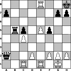 Partie-Notation im PGN-Format [Event "Spa"] [Site "www.mySchach.de"] [Date "2008.10.21"] [Round "1"] [White "Master1"] [Black "bluescreenlover"] [ECO "D20"] [WhitemyELO "1252"] [BlackmyELO "1258"] [Result "1-0"] [TimeControl "10/2592000"] [WhiteDays "73"] [BlackDays "73"] [MySchachNr "48938"] 1. d4 d5 2. c4 dxc4 3. e4 b5 4. Nc3 e6 5. Nxb5 Bb4+ 6. Nc3 Bxc3+ 7. bxc3 Ba6 8. Nf3 Ne7 9. Ne5 Nbc6 10. Bxc4 Bxc4 11. Nxc4 Rb8 12. O-O O-O 13. e5 Qd5 14. Ne3 Qb5 15. Ba3 Qa5 16. Bxe7 Nxe7 17. c4 c5 18. d5 Rfd8 19. d6 Nf5 20. Nxf5 exf5 21. Re1 Qc3 22. Rc1 Qa5 23. Qd5 Kh8 24. Qxf7 Qxa2 25. d7 Rb5 26. Qe8+ Rxe8 27. dxe8=Q# 1-0 Stellungs-Notation im FEN-Format 4R2k/p5pp/8/1rp1Pp2/2P5/8/q2P1PPP/2R1R1K1 - - - 0 27 Geschlagene Figuren Weiss: Geschlagene Figuren Schwarz: Klicken Sie auf eine geschlagene Figur um den gewünschten Zug darzustellen!