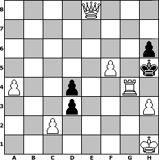 Partie-Notation im PGN-Format [Event "1.Badisches Dreik"] [Site "www.mySchach.de"] [Date "2014.01.07"] [Round "1"] [White "balesbenk1"] [Black "alpacino"] [ECO "C41"] [WhitemyELO "1507"] [BlackmyELO "1344"] [Result "1-0"] [TimeControl "10/2592000"] [WhiteDays "30"] [BlackDays "30"] [MySchachNr "92210"] 1. e4 e5 2. Nf3 d6 3. h3 Nf6 4. Nc3 Be6 5. d3 Nc6 6. Bg5 Be7 7. Bxf6 Bxf6 8. Be2 O-O 9. O-O Nd4 10. Nxd4 exd4 11. Nb1 Be5 12. Nd2 Qg5 13. Nf3 Qg6 14. Nh4 Qg5 15. Nf3 Qg6 16. Nxe5 Qg5 17. f4 Qg3 18. Rf3 Qh4 19. Kh2 dxe5 20. f5 Bd7 21. Qf1 Qe7 22. f6 gxf6 23. b4 b6 24. Rxf6 Kg7 25. Rf3 Kh8 26. a4 Bc6 27. b5 Bb7 28. Rg3 Rg8 29. Rxg8+ Rxg8 30. Bg4 Bc8 31. Bxc8 Rxc8 32. Qf5 Rg8 33. Rf1 Rg7 34. Qc8+ Rg8 35. Qb7 Qg5 36. Rg1 Qf4+ 37. Kh1 Qh4 38. Kh2 Qg3+ 39. Kh1 Qh4 40. Qxc7 f6 41. Qxa7 Rg3 42. Qb8+ Kg7 43. Qc7+ Kg6 44. Qxb6 Rxh3+ 45. gxh3+ Kh5 46. Qe6 Kh6 47. Qg4 Qxg4 48. Rxg4 Kh5 49. b6 h6 50. b7 f5 51. exf5 e4 52. b8=Q exd3 53. Qe8# 1-0 Stellungs-Notation im FEN-Format 4Q3/8/7p/5P1k/P2p2R1/3p3P/2P5/7K - - - 1 53 Geschlagene Figuren Weiss: Geschlagene Figuren Schwarz: Klicken Sie auf eine geschlagene Figur um den gewünschten Zug darzustellen!