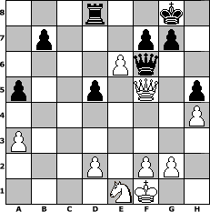 Partie-Notation im PGN-Format [Event "Herbstturnier 2025"] [Site "www.mySchach.de"] [Date "2025.09.16"] [Round "1"] [White "Jonas84"] [Black "Rotstift10"] [ECO "E10"] [WhitemyELO "1531"] [BlackmyELO "1692"] [Result "0-1"] [TimeControl "10/1728000"] [WhiteDays "80"] [BlackDays "55"] [MySchachNr "133656"] 1. d4 Nf6 2. c4 e6 3. Nf3 d5 4. a3 h6 5. Nc3 c6 6. e3 a5 7. Be2 Nbd7 8. O-O dxc4 9. Bxc4 Nb6 10. Bb3 Be7 11. Re1 O-O 12. e4 Qc7 13. Be3 Ng4 14. h3 Nxe3 15. Rxe3 Rd8 16. Rc1 Qf4 17. Qd3 h5 18. Ne2 Qh6 19. e5 c5 20. Rd1 Nd5 21. Bxd5 exd5 22. Ng3 cxd4 23. Qxd4 Ra6 24. Rde1 Rc6 25. h4 Bc5 26. Qd3 Bxe3 27. Rxe3 Bg4 28. Nf5 Rc1+ 29. Re1 Rxe1+ 30. Nxe1 Bxf5 31. Qxf5 Qc1 32. Kf1 Qxb2 33. e6 Qf6 0-1 Stellungs-Notation im FEN-Format 3r2k1/1p3pp1/4Pq2/p2p1Q1p/7P/P7/3P1PP1/4NK2 - - - 1 34 Geschlagene Figuren Weiss: Geschlagene Figuren Schwarz: Klicken Sie auf eine geschlagene Figur um den gewünschten Zug darzustellen!