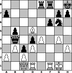 Partie-Notation im PGN-Format [Event "Es wird Fr"] [Site "www.mySchach.de"] [Date "2009.03.13"] [Round "1"] [White "murphy12"] [Black "ujack1961"] [ECO "A00"] [WhitemyELO "1608"] [BlackmyELO "1676"] [Result "0-1"] [TimeControl "10/2592000"] [WhiteDays "90"] [BlackDays "89"] [MySchachNr "53714"] 1. Nc3 d5 2. e4 d4 3. Nce2 e5 4. Nf3 Bd6 5. Ng3 Nf6 6. Bc4 O-O 7. O-O Bg4 8. d3 c5 9. h3 Bxf3 10. Qxf3 Nc6 11. Nf5 Ne8 12. Qg4 Kh8 13. Bg5 f6 14. Bd2 Qd7 15. f4 exf4 16. Bxf4 Bxf4 17. Qxf4 Ne5 18. Bb3 Nd6 19. Nxd6 Qxd6 20. Bd5 Rae8 21. Rab1 b5 22. g4 c4 23. Rbd1 Qb4 24. Qc1 c3 25. b3 Ng6 0-1 Stellungs-Notation im FEN-Format 4rr1k/p5pp/5pn1/1p1B4/1q1pP1P1/1PpP3P/P1P5/2QR1RK1 - - - 1 26 Geschlagene Figuren Weiss: Geschlagene Figuren Schwarz: Klicken Sie auf eine geschlagene Figur um den gewünschten Zug darzustellen!