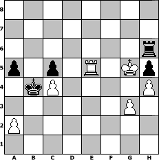Partie-Notation im PGN-Format [Event "Schwabenpfeil"] [Site "www.mySchach.de"] [Date "2009.11.30"] [Round "1"] [White "sprinterde"] [Black "martinus"] [ECO "B30"] [WhitemyELO "1608"] [BlackmyELO "1767"] [Result "1/2-1/2"] [TimeControl "10/2592000"] [WhiteDays "30"] [BlackDays "30"] [MySchachNr "61069"] 1. e4 c5 2. Nf3 Nc6 3. Bb5 Qb6 4. Nc3 Nf6 5. Bxc6 dxc6 6. d3 Bg4 7. h3 Bxf3 8. Qxf3 e5 9. O-O Be7 10. Qg3 Qc7 11. Qxg7 Rg8 12. Qh6 Rg6 13. Qe3 O-O-O 14. Qf3 Rdg8 15. g3 h5 16. Qf5+ Qd7 17. Qxd7+ Kxd7 18. Kg2 b6 19. Be3 Ne8 20. Ne2 Nd6 21. f4 Bf6 22. Rab1 a5 23. c3 c4 24. Rbd1 Kc7 25. fxe5 Bxe5 26. Bf4 Bxf4 27. Rxf4 cxd3 28. Rxd3 Re8 29. Nd4 Rxe4 30. Rxe4 Nxe4 31. Re3 Ng5 32. h4 Ne6 33. Nxe6+ fxe6 34. Re5 Rh6 35. Rg5 Kd6 36. c4 e5 37. Kf3 Rf6+ 38. Ke3 Rh6 39. b3 a4 40. bxa4 Kc5 41. a5 bxa5 42. Rxe5+ Kb4 43. Kf4 c5 44. Kg5 1/2-1/2 Stellungs-Notation im FEN-Format 8/8/7r/p1p1R1Kp/1kP4P/6P1/P7/8 - - - 1 44 Geschlagene Figuren Weiss: Geschlagene Figuren Schwarz: Klicken Sie auf eine geschlagene Figur um den gewünschten Zug darzustellen!