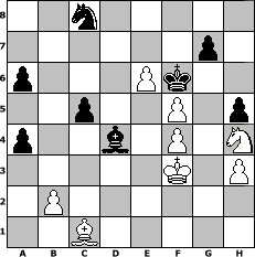 Partie-Notation im PGN-Format [Event "Ferienspass"] [Site "www.mySchach.de"] [Date "2016.07.25"] [Round "1"] [White "HenrySchinasky"] [Black "Erich"] [ECO "C90"] [WhitemyELO "2080"] [BlackmyELO "2131"] [Result "1/2-1/2"] [TimeControl "10/864000"] [WhiteDays "10"] [BlackDays "10"] [MySchachNr "104305"] 1. e4 e5 2. Nf3 Nc6 3. Bb5 a6 4. Ba4 Nf6 5. O-O Be7 6. Re1 b5 7. Bb3 d6 8. c3 O-O 9. d3 Na5 10. Bc2 c5 11. d4 exd4 12. cxd4 Bg4 13. e5 dxe5 14. dxe5 Nd5 15. Be4 Be6 16. Qc2 h6 17. Nc3 Nb4 18. Qe2 Ra7 19. Bf4 Rd7 20. Red1 Rxd1+ 21. Rxd1 Qc8 22. a3 Nbc6 23. Nd5 Nc4 24. a4 Bxd5 25. Bxd5 Nb6 26. Bb3 bxa4 27. Bc2 Nb4 28. Bb1 Qe6 29. h3 Rd8 30. Rxd8+ Bxd8 31. Qe4 Qg6 32. Qxg6 fxg6 33. Be3 Be7 34. Bxg6 Nc4 35. Bc1 Bd8 36. Kf1 Bc7 37. e6 Kf8 38. Ke2 Ke7 39. Bf5 Nd6 40. g4 Nxf5 41. gxf5 Kf6 42. Nh4 Be5 43. Kf3 Nd5 44. Ke4 Ne7 45. f3 Bd4 46. f4 h5 47. Kf3 Nd5 48. Ke4 Ne7 49. Kf3 Nc8 1/2-1/2 Stellungs-Notation im FEN-Format 2n5/6p1/p3Pk2/2p2P1p/p2b1P1N/5K1P/1P6/2B5 - - - 6 50 Geschlagene Figuren Weiss: ![]() ![]() ![]() ![]() ![]() ![]() ![]() ![]() ![]() ![]() ![]() ![]() ![]() ![]() ![]() Geschlagene Figuren Schwarz: ![]() ![]() ![]() ![]() ![]() ![]() ![]() ![]() ![]() ![]() ![]() ![]() ![]() ![]() ![]() Klicken Sie auf eine geschlagene Figur um den gewünschten Zug darzustellen!