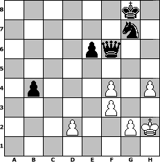 Partie eroeffnet am 06.02.2012, 00:06 Uhr und beendet am 10.03.2012, 15:43 Uhr Spieler weiss: Lemmi11 Spieler schwarz: woern63 woern63 hat die Partie gewonnen! | |