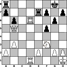 Partie-Notation im PGN-Format [Event "Labourdonnais Variante 1.e4 e6 2.f4"] [Site "www.mySchach.de"] [Date "2008.08.27"] [Round "2"] [White "Meister64"] [Black "Andreas"] [ECO "C00"] [WhitemyELO "1767"] [BlackmyELO "1600"] [Result "1-0"] [TimeControl "10/864000"] [WhiteDays "19"] [BlackDays "35"] [MySchachNr "47564"] 1. e4 e6 2. f4 d5 3. e5 c5 4. Nf3 Nc6 5. c3 g6 6. Na3 Bd7 7. Nc2 Bg7 8. d4 cxd4 9. cxd4 Nge7 10. Bd3 O-O 11. O-O Qb6 12. Qe1 Nf5 13. Bxf5 exf5 14. b3 Rfe8 15. Ba3 Rec8 16. Bc5 Qd8 17. Ne3 Be6 18. Ng5 b6 19. Bd6 Nxd4 20. Rd1 Nb5 21. Nxd5 Bxd5 22. Rxd5 Nxd6 23. Rxd6 Qe7 24. Qd2 Bxe5 25. fxe5 Qxe5 26. Nf3 Qc5+ 27. Kh1 Qb5 28. Rd1 Re8 29. Qd5 Re7 30. Qxb5 1-0 Stellungs-Notation im FEN-Format r5k1/p3rp1p/1p1R2p1/1Q3p2/8/1P3N2/P3P1PP/3R3K - - - 0 30 Geschlagene Figuren Weiss: ![]() ![]() ![]() ![]() ![]() ![]() ![]() ![]() ![]() ![]() ![]() ![]() ![]() ![]() ![]() Geschlagene Figuren Schwarz: ![]() ![]() ![]() ![]() ![]() ![]() ![]() ![]() ![]() ![]() ![]() ![]() ![]() ![]() ![]() Klicken Sie auf eine geschlagene Figur um den gewünschten Zug darzustellen!