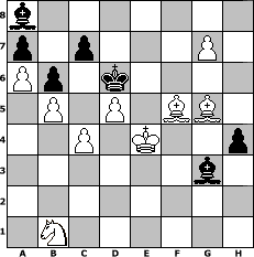 Partie-Notation im PGN-Format [Event "Chess 960 Winterturnier 2009/10"] [Site "www.mySchach.de"] [Date "2009.10.20"] [Round "1"] [White "nyffhans"] [Black "Schachfedi"] [Variant "Fischerrandom"] [SetUp "1"] [FEN "nnbbrkqr/pppppppp/8/8/8/8/PPPPPPPP/NNBBRKQR w KQkq - 0 1"] [WhitemyELO "1710"] [BlackmyELO "1840"] [Result "1-0"] [TimeControl "10/2592000"] [WhiteDays "99"] [BlackDays "78"] [MySchachNr "59980"] 1. Nc3 Nc6 2. f4 f5 3. Qf2 Nb6 4. Nb3 Qf7 5. O-O O-O 6. d3 e5 7. fxe5 Nxe5 8. d4 Ng4 9. Qg3 d6 10. e4 Qg6 11. a4 fxe4 12. Rxf8+ Rxf8 13. a5 Nc4 14. h3 Nge5 15. Qxg6 Nxg6 16. Be2 d5 17. Nxd5 Nd6 18. Ndc3 Bh4 19. Rf1 Rxf1+ 20. Kxf1 b6 21. g4 Bb7 22. Be3 Kf7 23. a6 Ba8 24. N3d2 Ne7 25. Bf4 Nd5 26. Nxd5 Bxd5 27. c4 Ba8 28. d5 Bf6 29. b4 Be7 30. b5 g5 31. Bg3 e3 32. Nf3 h6 33. Nd4 Ke8 34. Be5 Kd7 35. Bd3 Kd8 36. Bg7 Nf7 37. Nf5 Bc5 38. Nxh6 Nxh6 39. Bxh6 Be7 40. Ke2 Ke8 41. Kxe3 Kf7 42. Bf5 Kf6 43. Ke4 Bd6 44. h4 gxh4 45. g5+ Ke7 46. g6 Bg3 47. Bg5+ Kd6 48. g7 1-0 Stellungs-Notation im FEN-Format b7/p1p3P1/Pp1k4/1P1P1BB1/2P1K2p/6b1/8/1N6 - - - 0 48 Geschlagene Figuren Weiss: Geschlagene Figuren Schwarz: Klicken Sie auf eine geschlagene Figur um den gewünschten Zug darzustellen!
