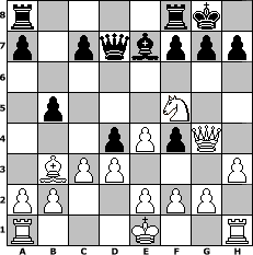 Partie-Notation im PGN-Format [Event "M"] [Site "www.mySchach.de"] [Date "2013.02.24"] [Round "1"] [White "frankto"] [Black "Rotstift10"] [ECO "C55"] [WhitemyELO "1732"] [BlackmyELO "1635"] [Result "1-0"] [TimeControl "10/3456000"] [WhiteDays "39"] [BlackDays "40"] [MySchachNr "86776"] 1. e4 e5 2. Nf3 Nc6 3. Bc4 Nf6 4. d3 Be7 5. c3 O-O 6. Bb3 d5 7. Nbd2 Bg4 8. h3 Bxf3 9. Qxf3 d4 10. Nf1 b5 11. Ng3 Qd7 12. Nf5 Nd8 13. Qg3 Nh5 14. Qg4 Ne6 15. Qxh5 Nf4 16. Bxf4 exf4 17. Qg4 1-0 Stellungs-Notation im FEN-Format r4rk1/p1pqbppp/8/1p3N2/3pPpQ1/1BPP3P/PP2PPP1/R3K2R - KQ - 1 17 Geschlagene Figuren Weiss: Geschlagene Figuren Schwarz: Klicken Sie auf eine geschlagene Figur um den gewünschten Zug darzustellen!
