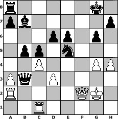 Partie eroeffnet am 27.09.2006, 00:02 Uhr und beendet am 17.12.2006, 19:19 Uhr Spieler weiss: AG666 Spieler schwarz: Caligula Caligula hat die Partie gewonnen! | |