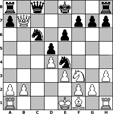 Partie-Notation im PGN-Format [Event "Der HSF feiert 3.Geburtstag-feiert dabei gern mit!"] [Site "www.mySchach.de"] [Date "2013.05.01"] [Round "1"] [White "zidan"] [Black "beowulf"] [ECO "D02"] [WhitemyELO "1318"] [BlackmyELO "1418"] [Result "0-1"] [TimeControl "10/2592000"] [WhiteDays "00"] [BlackDays "30"] [MySchachNr "88052"] 1. d4 d5 2. Nf3 Bg4 3. Nbd2 Nf6 4. e3 e6 5. h3 Bxf3 6. Nxf3 c5 7. c3 cxd4 8. cxd4 Bb4+ 9. Bd2 Bxd2+ 10. Qxd2 Ne4 11. Qb4 Nc6 12. Qxb7 Qc8 0-1 Stellungs-Notation im FEN-Format r1q1k2r/pQ3ppp/2n1p3/3p4/3Pn3/4PN1P/PP3PP1/R3KB1R - KQkq - 1 13 Geschlagene Figuren Weiss: Geschlagene Figuren Schwarz: Klicken Sie auf eine geschlagene Figur um den gewünschten Zug darzustellen!