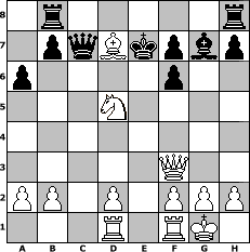 Partie-Notation im PGN-Format [Event "1-2009"] [Site "www.mySchach.de"] [Date "2009.01.01"] [Round "1"] [White "neve"] [Black "Master1"] [ECO "D10"] [WhitemyELO "1518"] [BlackmyELO "1286"] [Result "1-0"] [TimeControl "10/1728000"] [WhiteDays "40"] [BlackDays "13"] [MySchachNr "51207"] 1. d4 d5 2. c4 c6 3. Nc3 Nf6 4. Bg5 Bf5 5. Bxf6 gxf6 6. Nf3 dxc4 7. e4 Bg4 8. d5 Bxf3 9. Qxf3 cxd5 10. exd5 Nd7 11. Bxc4 Bg7 12. O-O Ne5 13. Bb5+ Nd7 14. d6 Rb8 15. dxe7 Qc7 16. Rad1 a6 17. Bxd7+ Kxe7 18. Nd5+ 1-0 Stellungs-Notation im FEN-Format 1r5r/1pqBkpbp/p4p2/3N4/8/5Q2/PP1P1PPP/3R1RK1 - - - 1 18 Geschlagene Figuren Weiss: Geschlagene Figuren Schwarz: Klicken Sie auf eine geschlagene Figur um den gewünschten Zug darzustellen!