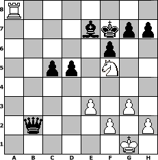 Partie-Notation im PGN-Format [Event "Sommerpause"] [Site "www.mySchach.de"] [Date "2011.06.29"] [Round "2"] [White "Greenhorn"] [Black "espero"] [ECO "A56"] [WhitemyELO "1641"] [BlackmyELO "1627"] [Result "0-1"] [TimeControl "10/864000"] [WhiteDays "00"] [BlackDays "10"] [MySchachNr "74773"] 1. d4 Nf6 2. c4 c5 3. dxc5 e6 4. b4 a5 5. Qa4 Na6 6. a3 axb4 7. axb4 Nc7 8. Qxa8 Nxa8 9. Rxa8 Be7 10. e3 O-O 11. Nf3 b6 12. Be2 bxc5 13. b5 d5 14. O-O Qc7 15. Ra1 Bb7 16. Nbd2 Ra8 17. Bb2 Nd7 18. Ra3 Rxa3 19. Bxa3 f6 20. Ra1 Nb6 21. Bb2 dxc4 22. Nxc4 Nxc4 23. Bxc4 Bd5 24. Bxd5 exd5 25. g3 Qb7 26. Nh4 Qxb5 27. Nf5 Qxb2 28. Ra8+ Kf7 0-1 Stellungs-Notation im FEN-Format R7/4bkpp/5p2/2pp1N2/8/4P1P1/1q3P1P/6K1 - - - 2 29 Geschlagene Figuren Weiss: Geschlagene Figuren Schwarz: Klicken Sie auf eine geschlagene Figur um den gewünschten Zug darzustellen!