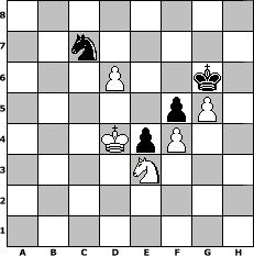 Partie-Notation im PGN-Format [Event "1000 Jahre Schachdorf Str"] [Site "www.mySchach.de"] [Date "2011.08.22"] [Round "1"] [White "Lemmi11"] [Black "Erich"] [ECO "D02"] [WhitemyELO "1771"] [BlackmyELO "1926"] [Result "1-0"] [TimeControl "10/2592000"] [WhiteDays "30"] [BlackDays "30"] [MySchachNr "75656"] 1. d4 d5 2. Nf3 Nf6 3. Bf4 Bf5 4. e3 e6 5. Bd3 Bxd3 6. Qxd3 Bd6 7. Qb5+ Nbd7 8. Nc3 Qb8 9. Bxd6 cxd6 10. a4 a6 11. Qd3 Qd8 12. a5 O-O 13. O-O Rc8 14. e4 dxe4 15. Nxe4 Nxe4 16. Qxe4 Qc7 17. c3 Nf6 18. Qd3 Rfe8 19. Rfe1 h6 20. Nd2 e5 21. d5 g6 22. c4 Nh5 23. b4 f5 24. Rac1 Qf7 25. Qe3 Kg7 26. Rb1 Rc7 27. Qb6 Rd7 28. b5 Ra8 29. Qe3 Rc7 30. bxa6 Rxa6 31. Rb5 Nf6 32. Reb1 Qe7 33. h3 Qf7 34. Qb3 Kf8 35. Qa3 Qe7 36. Rb6 Rxb6 37. Rxb6 Ne8 38. Qb2 Qf7 39. f4 e4 40. Qh8+ Ke7 41. Qxh6 Kd7 42. Qh8 Qf6 43. Qxf6 Nxf6 44. Kf2 Ke7 45. Nb3 Nd7 46. Rb4 b6 47. axb6 Rb7 48. Ke3 Rxb6 49. Rxb6 Nxb6 50. Na5 Kf6 51. g4 Kf7 52. Kd4 Nd7 53. Nb7 Ke7 54. g5 Nb8 55. c5 dxc5+ 56. Nxc5 Kd6 57. Nb7+ Ke7 58. Na5 Na6 59. h4 Nc7 60. Nc4 Kf7 61. Ne3 Na8 62. h5 Nc7 63. hxg6+ Kxg6 64. d6 1-0 Stellungs-Notation im FEN-Format 8/2n5/3P2k1/5pP1/3KpP2/4N3/8/8 - - - 0 64 Geschlagene Figuren Weiss: Geschlagene Figuren Schwarz: Klicken Sie auf eine geschlagene Figur um den gewünschten Zug darzustellen!