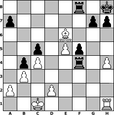 Partie-Notation im PGN-Format [Event "^^Lust, Laune und Spannung am Schach!!!^^"] [Site "www.mySchach.de"] [Date "2007.09.24"] [Round "1"] [White "Knight"] [Black "bruno"] [ECO "D00"] [WhitemyELO "1290"] [BlackmyELO "1483"] [Result "0-1"] [TimeControl "10/864000"] [WhiteDays "29"] [BlackDays "30"] [MySchachNr "38424"] 1. d4 d5 2. e4 e6 3. Nc3 Nf6 4. Bg5 Be7 5. e5 Ne4 6. Bxe7 Qxe7 7. Nxe4 dxe4 8. Qg4 O-O 9. O-O-O Nc6 10. Qxe4 Bd7 11. Nf3 f6 12. Bd3 f5 13. Qh4 Qxh4 14. Nxh4 Nxd4 15. f4 c5 16. Bc4 b5 17. Bd3 b4 18. Nf3 Bc6 19. Bc4 Nxf3 20. gxf3 Bxf3 21. Bxe6+ Kh8 22. h4 Bxh1 23. Rxh1 Rad8 24. c4 Rd4 25. b3 Rxf4 0-1 Stellungs-Notation im FEN-Format 5r1k/p5pp/4B3/2p1Pp2/1pP2r1P/1P6/P2P4/2K4R - - - 0 26 Geschlagene Figuren Weiss: Geschlagene Figuren Schwarz: Klicken Sie auf eine geschlagene Figur um den gewünschten Zug darzustellen!