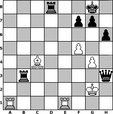 Partie-Notation im PGN-Format [Event "Herbst 2014"] [Site "www.mySchach.de"] [Date "2014.09.08"] [Round "1"] [White "lotchi"] [Black "Winston"] [ECO "C41"] [WhitemyELO "1279"] [BlackmyELO "1440"] [Result "0-1"] [TimeControl "10/2592000"] [WhiteDays "054"] [BlackDays "113"] [MySchachNr "95834"] 1. e4 e5 2. Nf3 d6 3. Nc3 a6 4. d3 h6 5. a3 Nc6 6. Be3 Nf6 7. Be2 Be7 8. Qd2 Be6 9. h3 O-O 10. g4 d5 11. exd5 Nxd5 12. O-O Nxe3 13. Qxe3 Nd4 14. Bd1 Qd7 15. Nxe5 Qd6 16. f4 Bh4 17. Ne4 Qb6 18. b3 c5 19. Nc4 Bxc4 20. bxc4 Rae8 21. Qd2 Qc7 22. c3 Ne6 23. Ba4 Rb8 24. f5 Ng5 25. Nxg5 Bxg5 26. Qh2 Qa5 27. Qc2 Rfd8 28. Rfe1 b5 29. cxb5 axb5 30. Bb3 c4 31. dxc4 bxc4 32. Ba2 Qc5+ 33. Qf2 Qxa3 34. Bxc4 Qxc3 35. Be2 Be3 36. Qxe3 Qxe3+ 37. Kg2 Rb3 38. Bc4 Qxh3+ 0-1 Stellungs-Notation im FEN-Format 3r2k1/5pp1/7p/5P2/2B3P1/1r5q/6K1/R3R3 - - - 0 39 Geschlagene Figuren Weiss: Geschlagene Figuren Schwarz: Klicken Sie auf eine geschlagene Figur um den gewünschten Zug darzustellen!