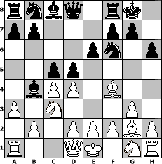 Partie-Notation im PGN-Format [Event "Katalanisch"] [Site "www.mySchach.de"] [Date "2012.06.11"] [Round "2"] [White "sprinterde"] [Black "Duschgel"] [ECO "E00"] [WhitemyELO "1726"] [BlackmyELO "1564"] [Result "1-0"] [TimeControl "10/1728000"] [WhiteDays "18"] [BlackDays "00"] [MySchachNr "82169"] 1. d4 Nf6 2. c4 e6 3. g3 Bb4+ 4. Nc3 O-O 5. Bg2 c5 6. Bg5 h6 7. Bf4 d5 8. a3 1-0 Stellungs-Notation im FEN-Format rnbq1rk1/pp3pp1/4pn1p/2pp4/1bPP1B2/P1N3P1/1P1PPPBP/R2QK1NR - KQ - 0 8 Geschlagene Figuren Weiss: Geschlagene Figuren Schwarz: Klicken Sie auf eine geschlagene Figur um den gewünschten Zug darzustellen!