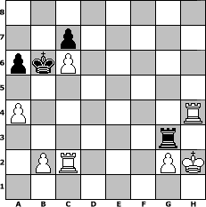 Partie-Notation im PGN-Format [Event "Sommerschach"] [Site "www.mySchach.de"] [Date "2018.05.26"] [Round "1"] [White "alpacino"] [Black "Schefsche"] [ECO "D02"] [WhitemyELO "1317"] [BlackmyELO "1330"] [Result "1-0"] [TimeControl "10/2592000"] [WhiteDays "30"] [BlackDays "30"] [MySchachNr "112194"] 1. d4 d5 2. Nf3 Bg4 3. Ne5 Nf6 4. Nxg4 Nxg4 5. h3 Nf6 6. e3 e6 7. Bd2 a6 8. Bd3 Nc6 9. Nc3 Ne4 10. Bxe4 dxe4 11. Nxe4 Bb4 12. c3 Ba5 13. Nc5 b6 14. Nb3 Qd5 15. O-O h5 16. Qc1 g5 17. c4 Qd6 18. c5 bxc5 19. dxc5 Qe5 20. Bxa5 O-O-O 21. Bc3 Qf5 22. Bxh8 Rxh8 23. Nd4 Nxd4 24. exd4 h4 25. Qe3 g4 26. Qe2 Kb7 27. c6+ Ka7 28. Qe3 Qd5 29. Rfc1 gxh3 30. Qxh3 Qxd4 31. Qe3 e5 32. Rd1 Qxe3 33. fxe3 Rh6 34. Rdc1 Rg6 35. Rc2 f5 36. a4 f4 37. exf4 exf4 38. Rf1 Rg4 39. Kh2 Rg3 40. Rxf4 Kb6 41. Rxh4 1-0 Stellungs-Notation im FEN-Format 8/2p5/pkP5/8/P6R/6r1/1PR3PK/8 - - - 0 41 Geschlagene Figuren Weiss: Geschlagene Figuren Schwarz: Klicken Sie auf eine geschlagene Figur um den gewünschten Zug darzustellen!