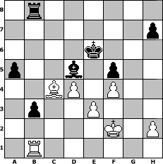 Partie eroeffnet am 16.06.2006, 00:01 Uhr und beendet am 25.09.2006, 00:05 Uhr Spieler weiss: Rickado Spieler schwarz: Stoertebecker Stoertebecker hat die Partie gewonnen! | |