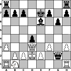 Partie-Notation im PGN-Format [Event "Sommer 2025"] [Site "www.mySchach.de"] [Date "2025.05.13"] [Round "1"] [White "Alencar"] [Black "Campino1986"] [ECO "A13"] [WhitemyELO "1409"] [BlackmyELO "1543"] [Result "0-1"] [TimeControl "10/2592000"] [WhiteDays "69"] [BlackDays "36"] [MySchachNr "133345"] 1. c4 e6 2. Nc3 Nf6 3. g3 g6 4. Bg2 d5 5. cxd5 exd5 6. d4 Bb4 7. a3 Be7 8. Bg5 Bf5 9. Bh3 Ng4 10. Bxg4 Bxg4 11. Bxe7 Kxe7 12. h3 Be6 13. Nf3 Nc6 14. Ne5 Nxe5 15. dxe5 d4 16. Nb1 Qd5 17. f3 Qxe5 18. Qd3 Qxg3+ 19. Kd2 Qg2 0-1 Stellungs-Notation im FEN-Format r6r/ppp1kp1p/4b1p1/8/3p4/P2Q1P1P/1PPKP1q1/RN5R - - - 2 20 Geschlagene Figuren Weiss: Geschlagene Figuren Schwarz: Klicken Sie auf eine geschlagene Figur um den gewünschten Zug darzustellen!