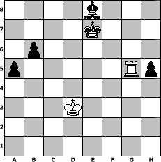 Partie-Notation im PGN-Format [Event "top10-01"] [Site "www.mySchach.de"] [Date "2006.12.01"] [Round "1"] [White "BirdofPray1"] [Black "larlinde"] [ECO "A05"] [WhitemyELO "2135"] [BlackmyELO "2256"] [Result "1/2-1/2"] [TimeControl "10/864000"] [WhiteDays "22"] [BlackDays "39"] [MySchachNr "30571"] 1. Nf3 Nf6 2. d4 g6 3. c4 Bg7 4. Nc3 d5 5. Bg5 Ne4 6. Bf4 c5 7. Nxd5 Na6 8. e3 Qa5+ 9. Nd2 cxd4 10. exd4 e6 11. b4 Nxb4 12. Nc7+ Ke7 13. Qb1 Rd8 14. a3 Nc2+ 15. Qxc2 Rxd4 16. Rc1 Nxd2 17. Bxd2 Qxc7 18. Bb4+ Ke8 19. Bc3 Qc6 20. Bxd4 Bxd4 21. h4 h5 22. Bd3 Qxg2 23. Be4 Bxf2+ 24. Qxf2 Qxe4+ 25. Kd2 e5 26. Rhe1 Qg4 27. Kc3 Be6 28. Kb2 Rc8 29. Rxe5 Rxc4 30. Rce1 a6 31. Qd2 Rc6 32. R5e4 Qg3 33. R1e3 Rb6+ 34. Kc1 Qg1+ 35. Qe1 Rc6+ 36. Kb1 Qxe1+ 37. Rxe1 Ke7 38. Kb2 f6 39. Rb4 b6 40. Rg1 a5 41. Rd4 Bf5 42. Rc1 Rxc1 43. Kxc1 g5 44. Kd2 Be6 45. a4 Bb3 46. Kc3 Bf7 47. Kd2 Be6 48. Kd3 Bd7 49. hxg5 fxg5 50. Rd5 Bxa4 51. Rxg5 Be8 1/2-1/2 Stellungs-Notation im FEN-Format 4b3/4k3/1p6/p5Rp/8/3K4/8/8 - - - 1 52 Geschlagene Figuren Weiss: Geschlagene Figuren Schwarz: Klicken Sie auf eine geschlagene Figur um den gewünschten Zug darzustellen!