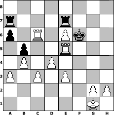 Partie-Notation im PGN-Format [Event "Krampusturnier 2"] [Site "www.mySchach.de"] [Date "2014.12.01"] [Round "1"] [White "Seneca"] [Black "lotchi"] [ECO "D00"] [WhitemyELO "1534"] [BlackmyELO "1226"] [Result "1-0"] [TimeControl "10/1728000"] [WhiteDays "16"] [BlackDays "15"] [MySchachNr "96973"] 1. d4 d5 2. e3 Nc6 3. a3 Nf6 4. Nc3 Bg4 5. Be2 Bxe2 6. Ngxe2 e6 7. O-O Be7 8. Bd2 O-O 9. Ng3 a6 10. f3 Bd6 11. Nge2 Qe7 12. b4 b5 13. Rb1 Qd7 14. Be1 Rfb8 15. Bg3 Bxg3 16. Nxg3 Qe7 17. Nce2 Kh8 18. c3 g6 19. Nf4 e5 20. Nd3 e4 21. Nc5 Nh5 22. Nxh5 gxh5 23. fxe4 Rf8 24. e5 Qg5 25. Qf3 Ne7 26. Nd7 Rfd8 27. Nf6 Rf8 28. Nxh5 f5 29. Nf6 Ng8 30. Nxg8 Qxg8 31. Qh5 Qe6 32. Rf4 c6 33. Rbf1 Qg6 34. Rxf5 Rg8 35. Qxg6 hxg6 36. Rf6 Rac8 37. Rd6 g5 38. Rff6 Kh7 39. Rxc6 Ra8 40. Rh6+ Kg7 41. Rhd6 Ra7 42. Rxd5 Re8 43. e6 Ree7 44. Rxg5+ Kf6 45. Re5 1-0 Stellungs-Notation im FEN-Format 8/r3r3/p1R1Pk2/1p2R3/1P1P4/P1P1P3/6PP/6K1 - - - 2 45 Geschlagene Figuren Weiss: Geschlagene Figuren Schwarz: Klicken Sie auf eine geschlagene Figur um den gewünschten Zug darzustellen!